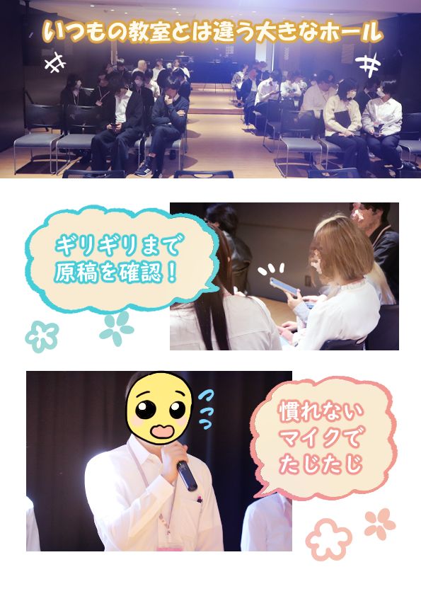 まぶしい照明、慣れないマイク、発表も成長に必要なひとつの通過点です。