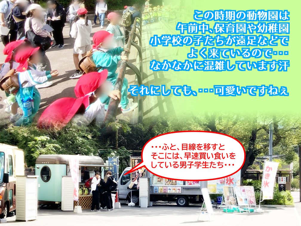 お昼休憩もほどほどに・・・午後以降は保育園、幼稚園、小学校の子たちが大体引き上げて園内の人出がだいぶ落ち着いてきます。