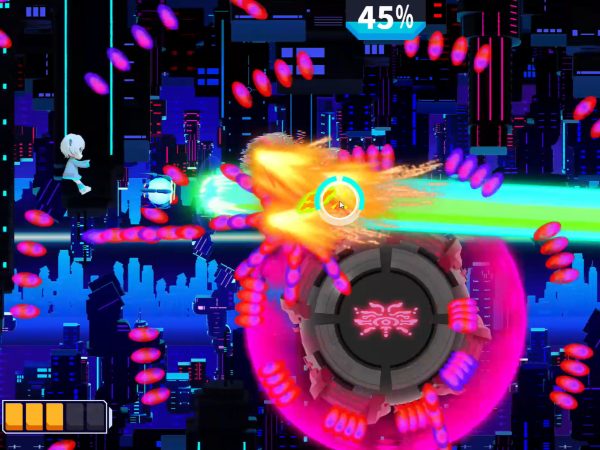 主人公であるスイートがウイルスに侵食された電子空間を飛び回り、ウイルスと戦う2D全方位シューティングゲームです。