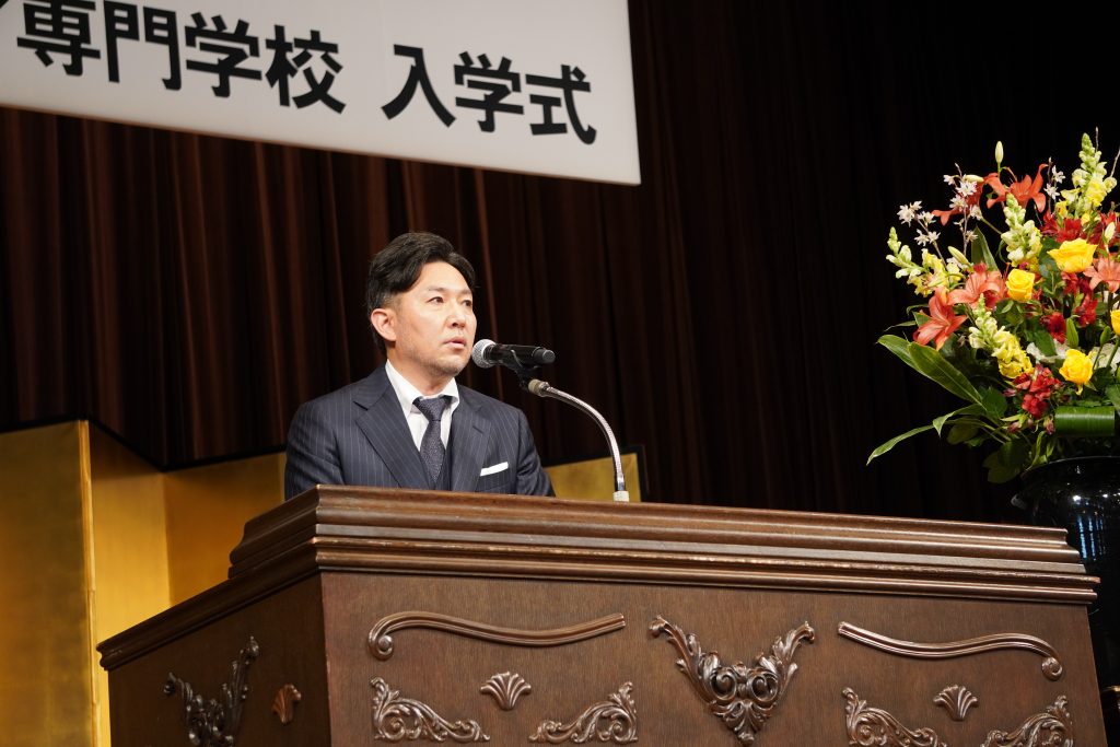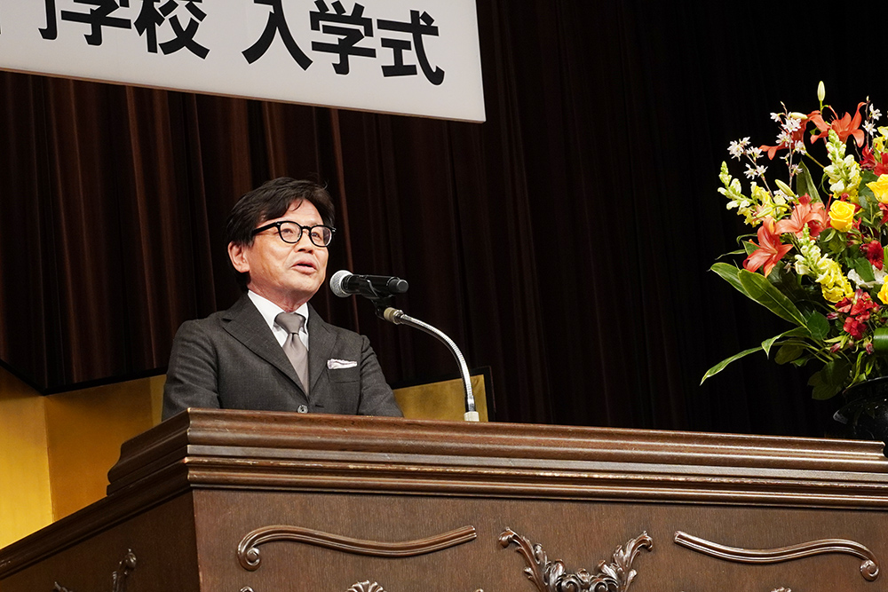 祝辞の中で語られた「エンタテインメント業界の未来」や「プロとして活躍するための心構え」に、新入生たちは時折パッと明るい笑顔を見せ、また時には表情を引き締め、真剣に耳を傾けている様子が印象的でした。