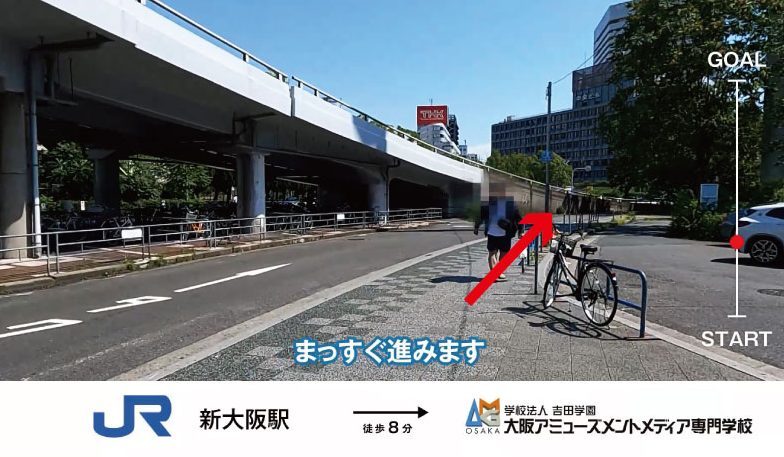 JR新大阪駅から大阪アミューズメントメディア専門学校へのアクセスをご紹介します。