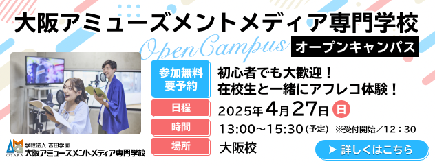 大阪で声優を目指されている方は「大阪アミューズメントメディア専門学校」で学びませんか?